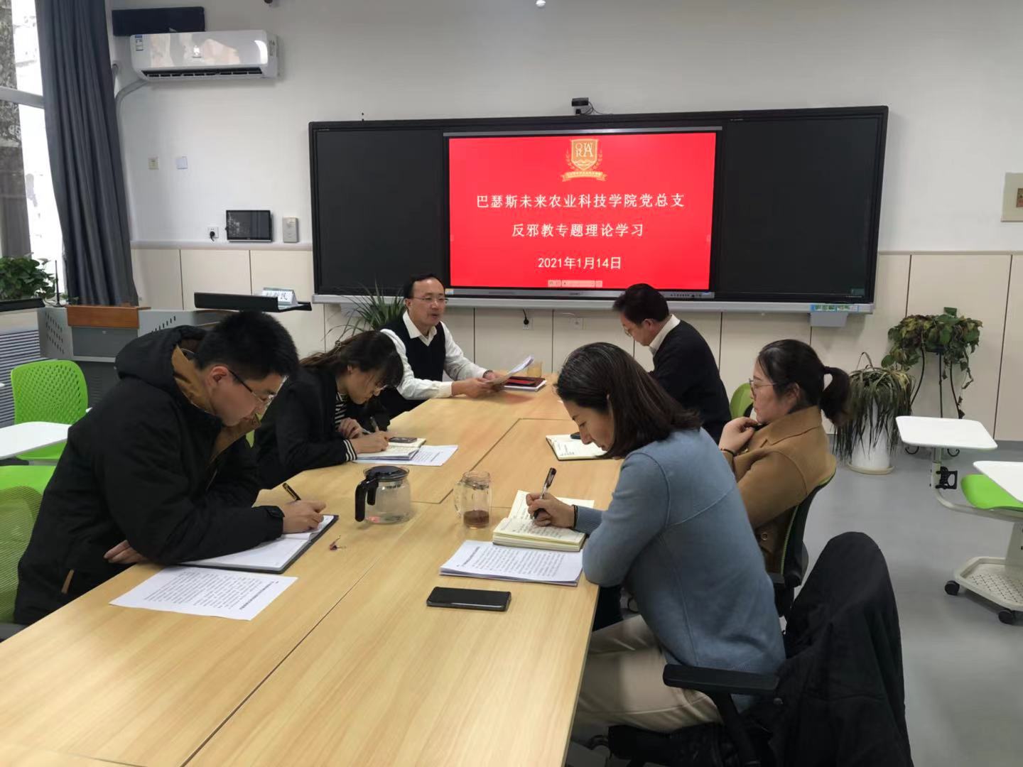 1月14日下午,巴瑟斯未来农业科技学院于教学楼F105开展反邪教专题理论学习。会议由党总支负责人吕玉亭主持,全体教职工参加。