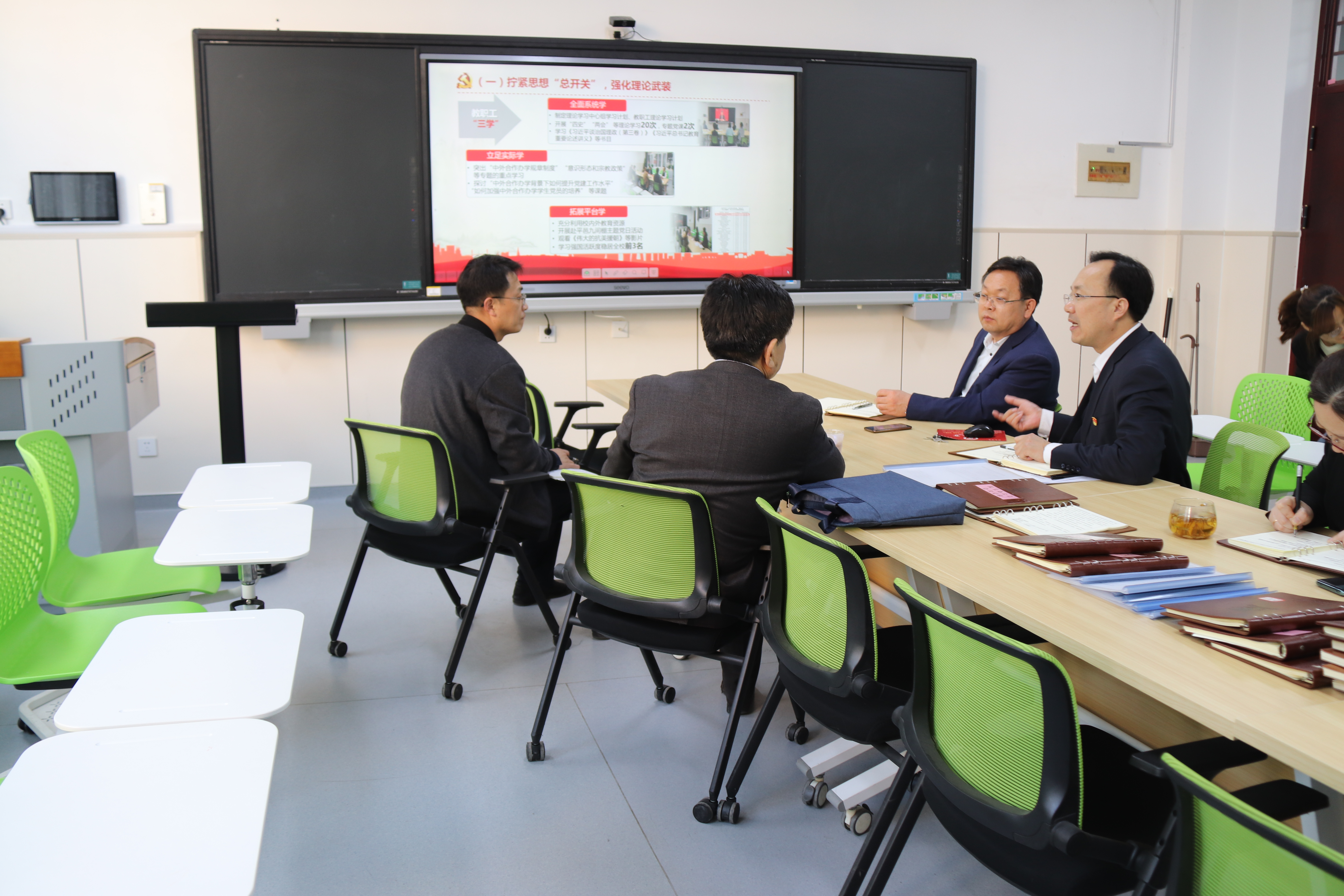 田义轲听取了学院党总支负责人吕玉亭对学院党建工作的汇报。吕玉亭围绕政治理论学习、落实党建主体责任、意识形态工作、招生宣传、“5L”党建工程、“六度”学生工作体系等六个方面,做了全面、系统、细致的汇报。随后,检查组通过现场查阅资料的方式对学院党建工作做进一步深入了解。