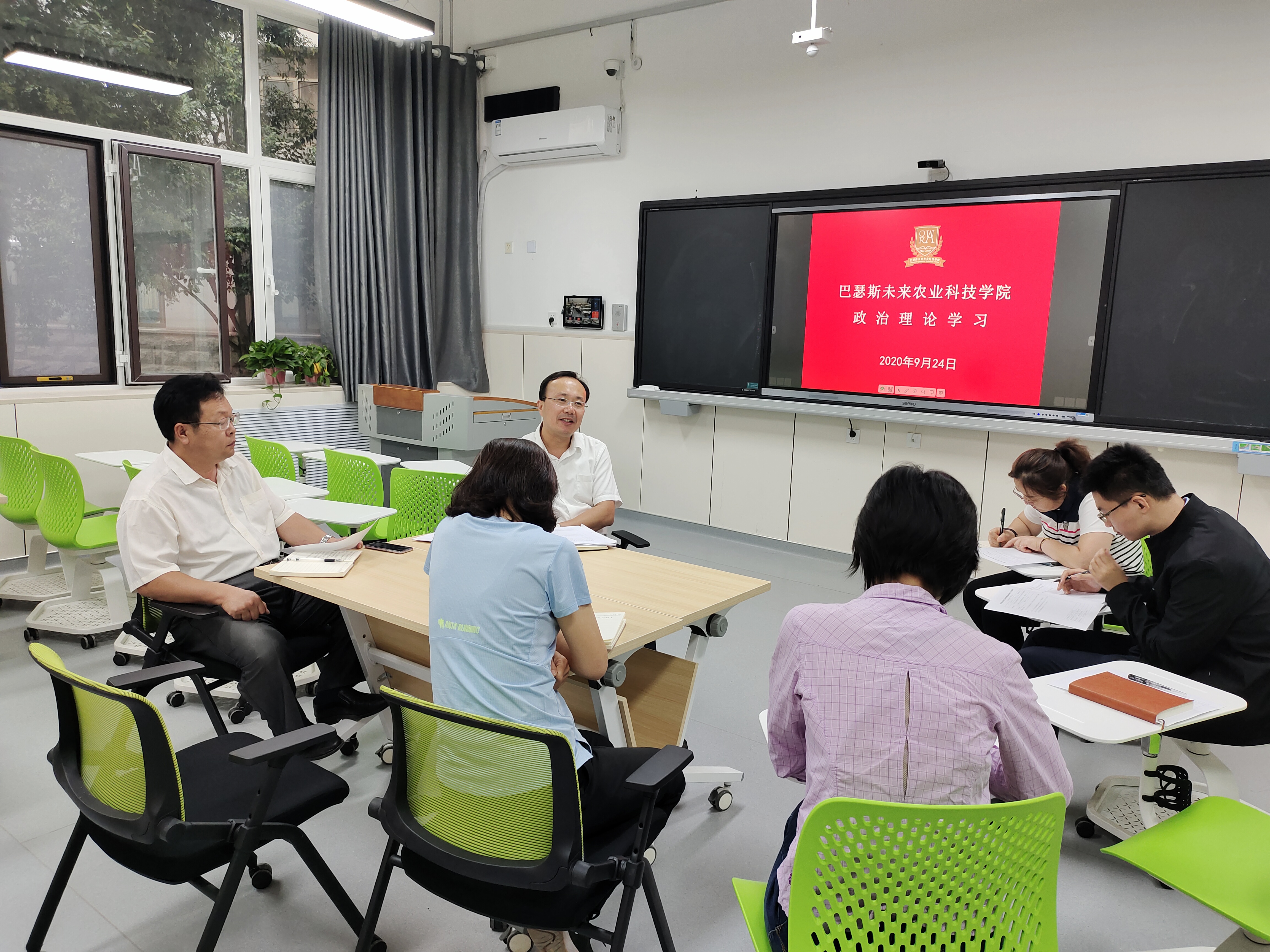 9月24日下午,巴瑟斯未来农业科技学院于教学楼F105开展政治理论学习。会议由党总支负责人吕玉亭主持,全体教职工参加。