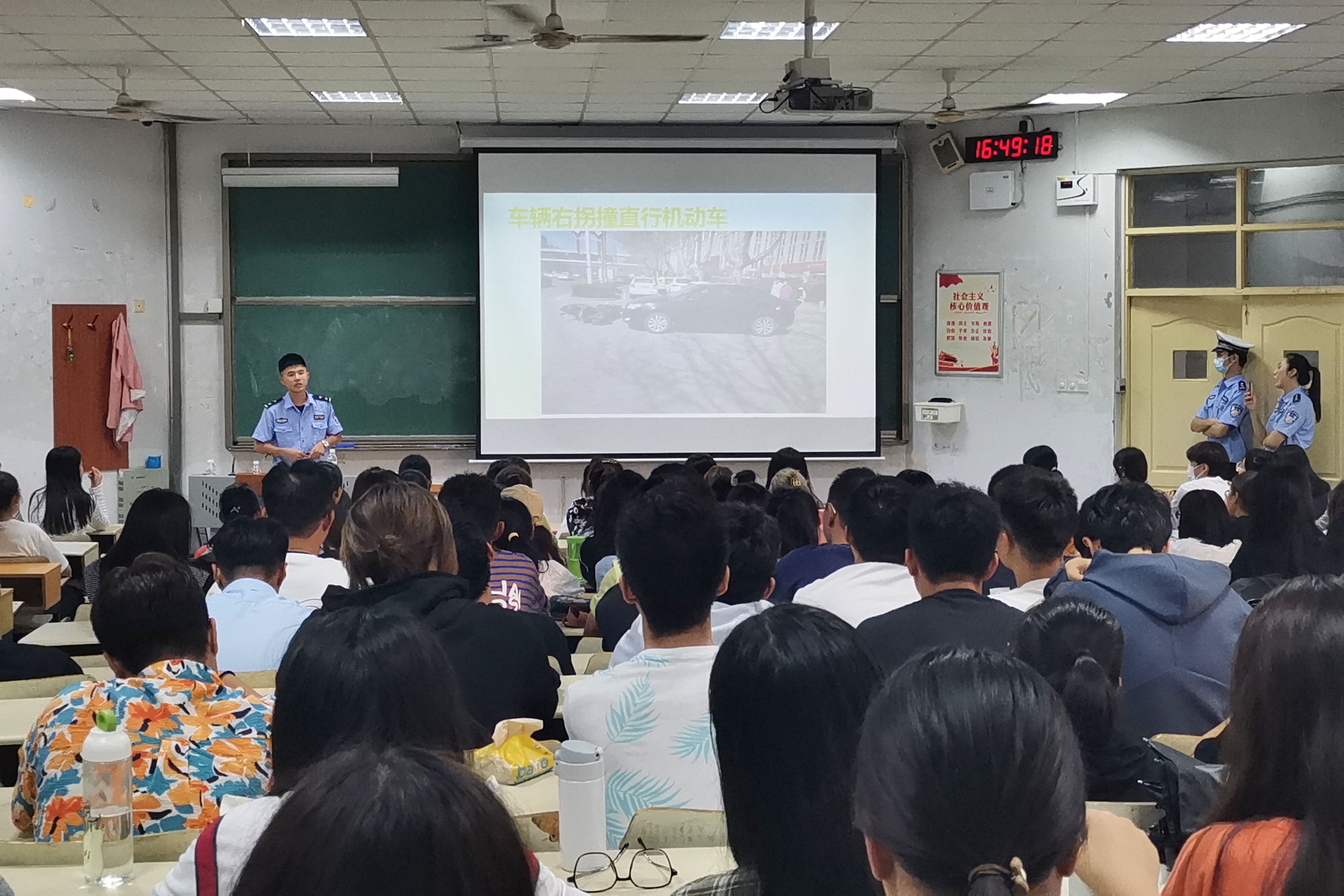通过本次交通安全讲座,同学们学习了交通法律法规,提高了安全防范意识,同时也为学校和社会之间协同联动、同向同行搭建平台,共同为师生构建一个平安校园。
