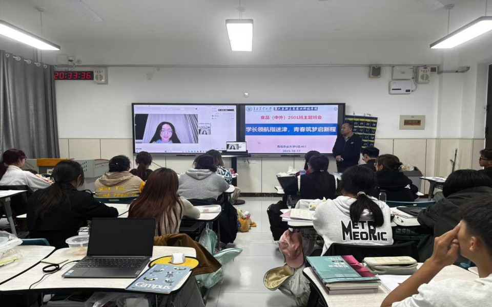 为帮助新生适应大学生活、明确未来发展方向,10月17日,青岛农业大学巴瑟斯未来农业科技学院食品科学与工程(中外)专业2501班在教学楼G403举办“学长领航指迷津,青春筑梦启新程”主题班会。班会由班主任韩荣伟主持,邀请2024届优秀毕业生韩依彤(伦敦大学学院)、宋军瑶(香港大学),2025届优秀毕业生王文珂(香港理工大学)、孙玉淳(江南大学)担任分享嘉宾,食品科学与工程(中外)专业2501班全体学生参加。