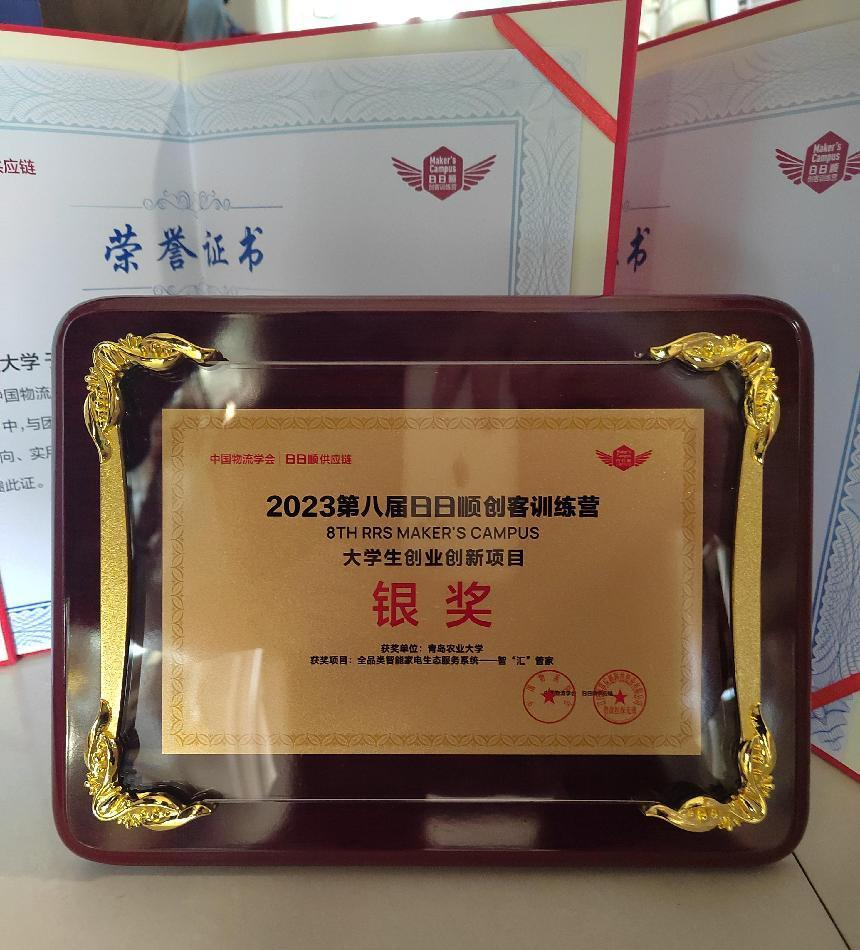 我校物流学子在老师的悉心指导下,立足行业实际,以用户需求为导向,融合专业理论和实践,发散创新思维,深度进行头脑风暴,制定切实可行方案。团队所做课题《全品类智能家电生态服务系统——智“汇”管家业》最终在43个项目中脱颖而出,与北京交通大学、东北林业大学、华东交通大学并列获得2023第八届日日顺创客训练营创业创新项目银奖和一万元创业启动基金。同时,团队与北京大学、中国科学技术大学、华中科技大学等17所高校共同获得“日日顺创客训练营优秀组织奖”。