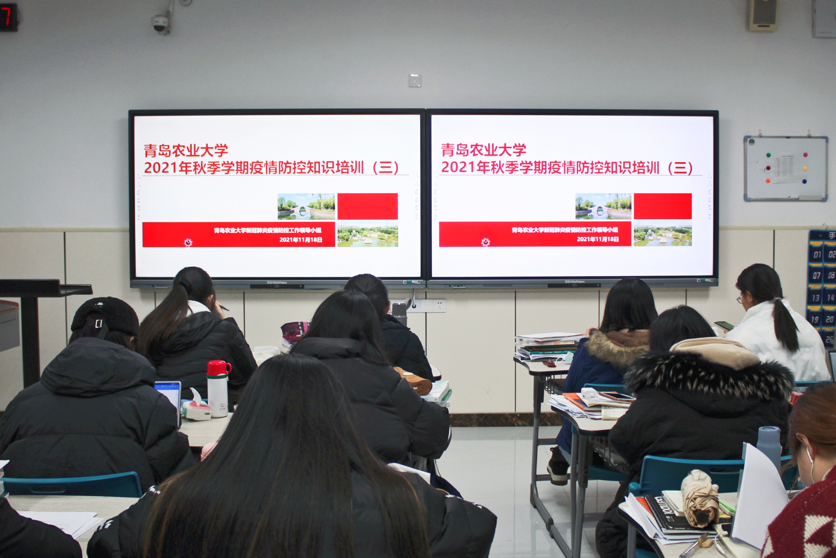 各班班长带领同学们观看《青岛农业大学秋季学期第三期疫情防控知识培训》视频。此次培训包含学校传染病防治基本要求与各类秋冬季传染病预防两部分。同学们进一步学习了甲、乙、丙类传染病的具体分类、易感人群、患病症状与防治措施等,并了解到学校是特殊的公共场所,人口密集,极易造成传染病爆发和流行,而学生作为学校的重点人群,是传染病的高发和易感人群。同学们纷纷表示,会进一步提高传染病防范意识,做好疫情防控和监督工作,为建设平安校园贡献自己的力量。