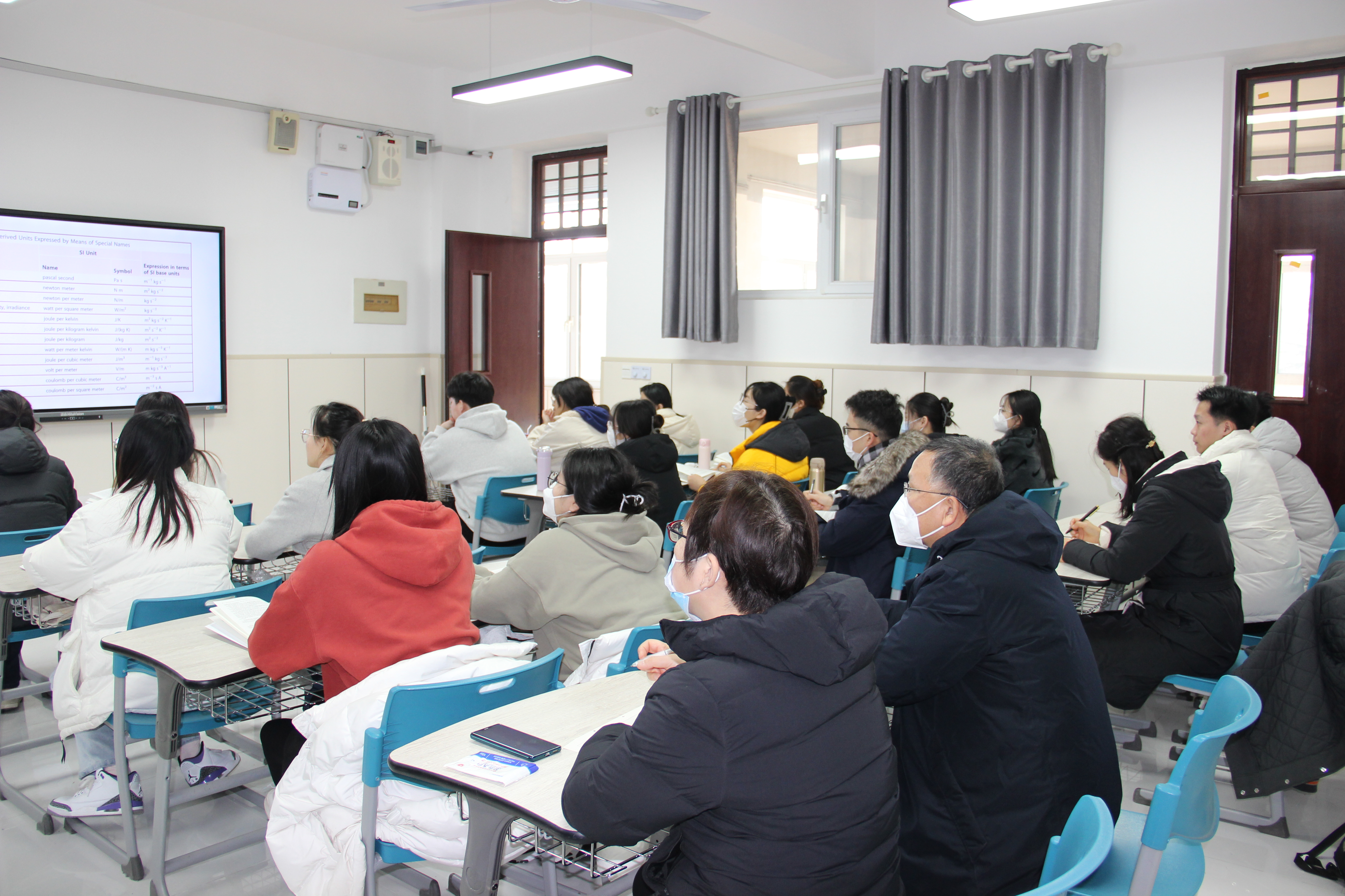 课堂中,教师采用全英文授课的教学模式,同学们认真听讲,认真做好笔记,积极回答问题,与老师热情互动,表现出浓厚的学习兴趣,课堂氛围充满活力。课后学院领导与师生面对面交流,了解课前准备情况和学生反响,切实指导新学期课堂教学的改进方向。