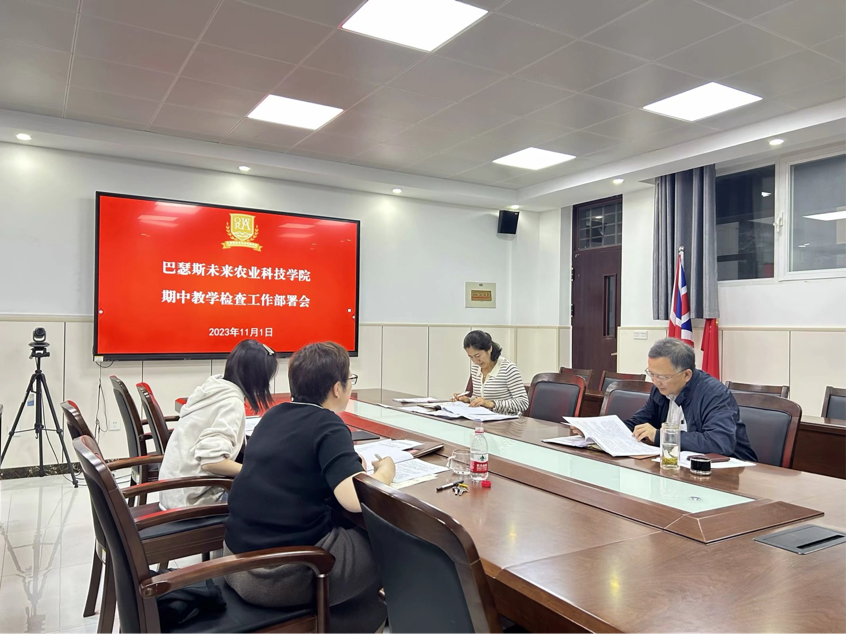 为强化教学过程管理,规范教学组织行为,提升教学水平和质量,11月1日,巴瑟斯未来农业科技学院于教学楼G205召开期中教学检查工作部署会。会议由学院院长郑丹主持,副院长陈海华、正科级秘书王继芳、英国皇家农业大学驻校专员王馨然参会。