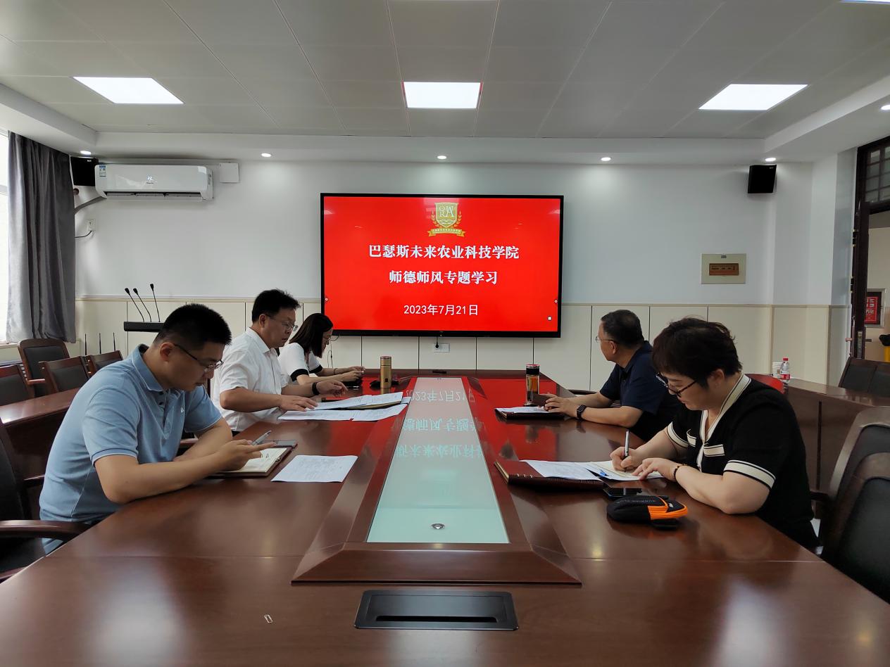 师德师风关系党的教育方针能否在学院内得到高质量贯彻,是保证学院教育教学成效的关键。为加强师德师风建设,7月21日,巴瑟斯未来农业科技学院在教学楼G205开展师德师风专题学习,学院全体教职工通过线下线上方式参加,会议由学院党委书记刘焕奇主持。