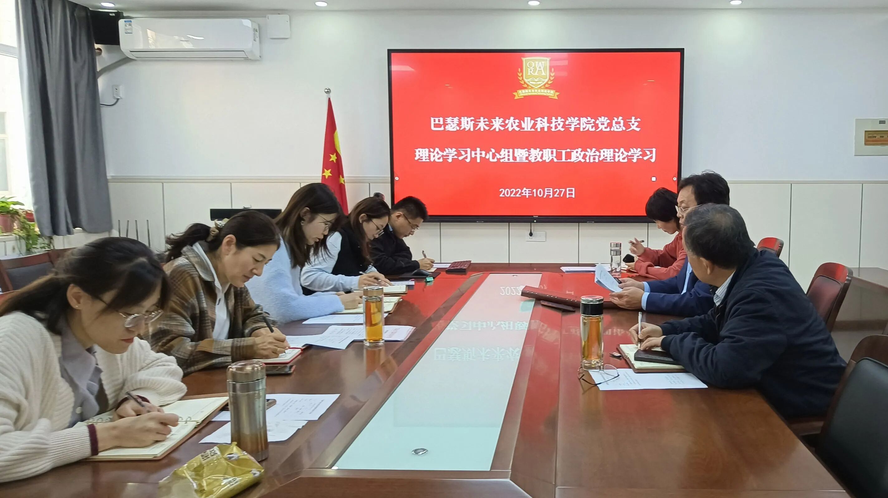 为进一步宣传学习贯彻党的二十大会议精神,10月27日,巴瑟斯未来农业科技学院在G205开展“党的二十大精神”专题学习,本次学习由学院党委书记刘焕奇主持,全体教职工参加。
