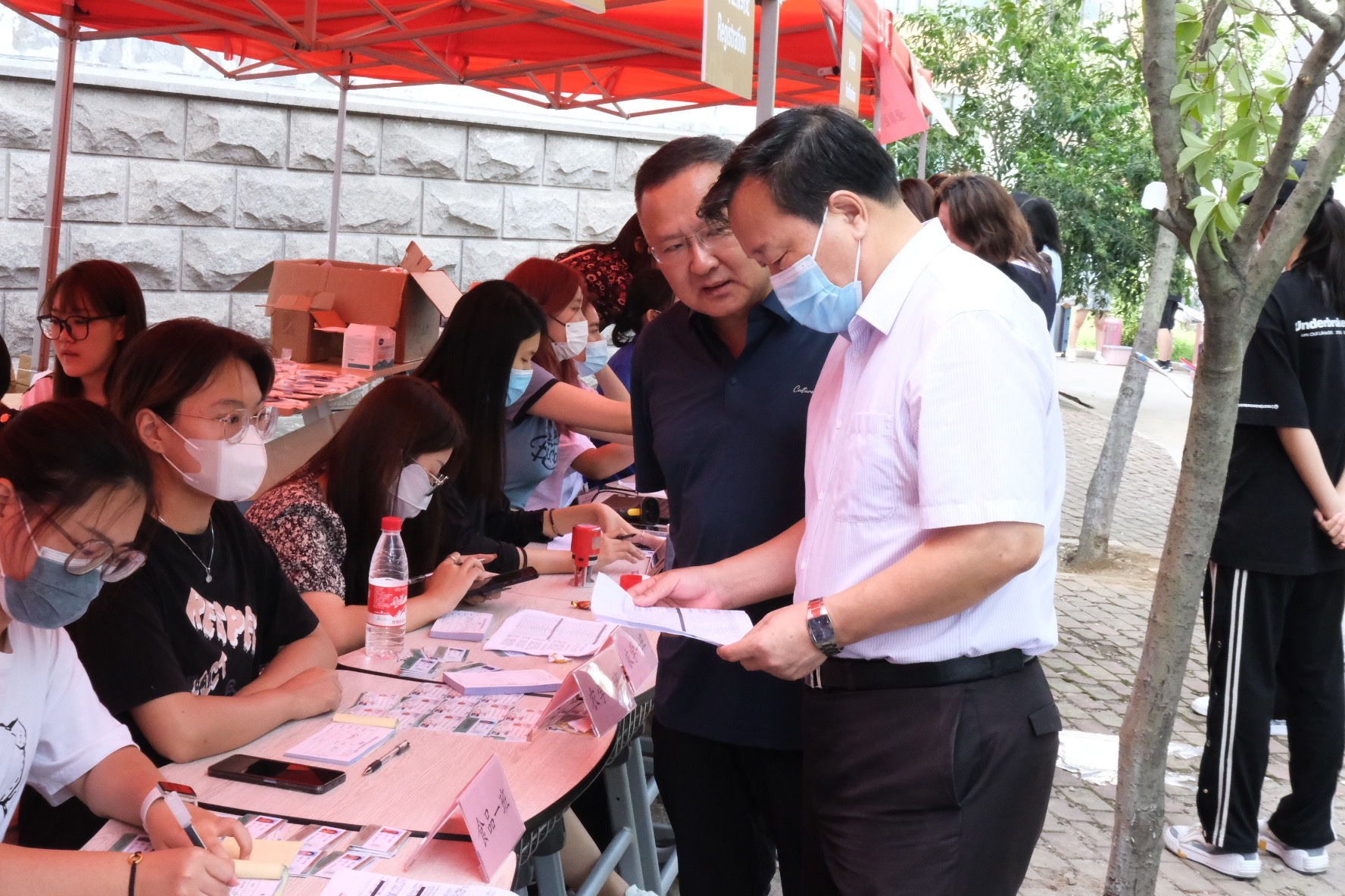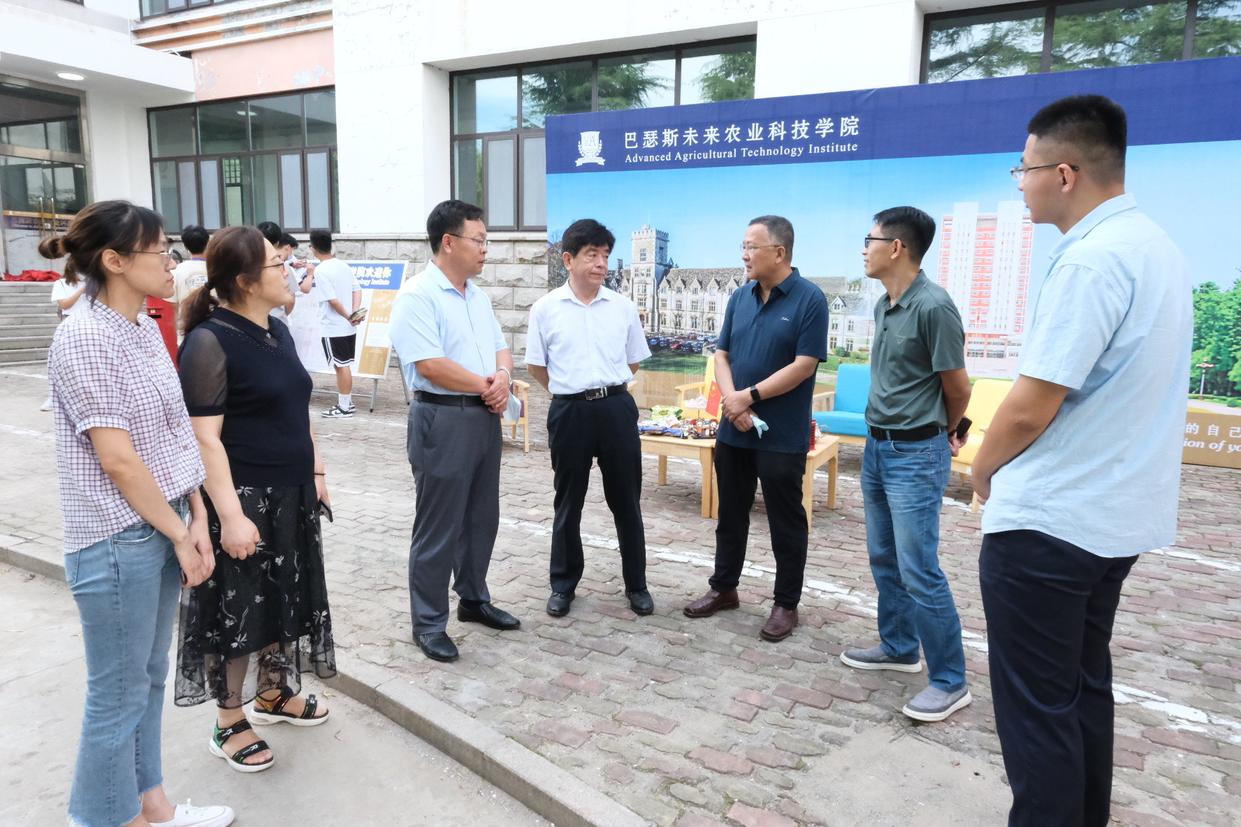 8月27日上午,青岛农业大学党委书记郭善利、副校长田义轲来到迎新地点视察工作。学院党总支书记刘焕奇介绍了学院的迎新工作特色,并就2022级新生的录取情况、报到情况进行了介绍,校领导与新生交流时勉励新生要坚定理想信念,立鸿鹄志,撰青春华章,借助学院中外合作特色优势,培养国际视野,涵育专业素养。