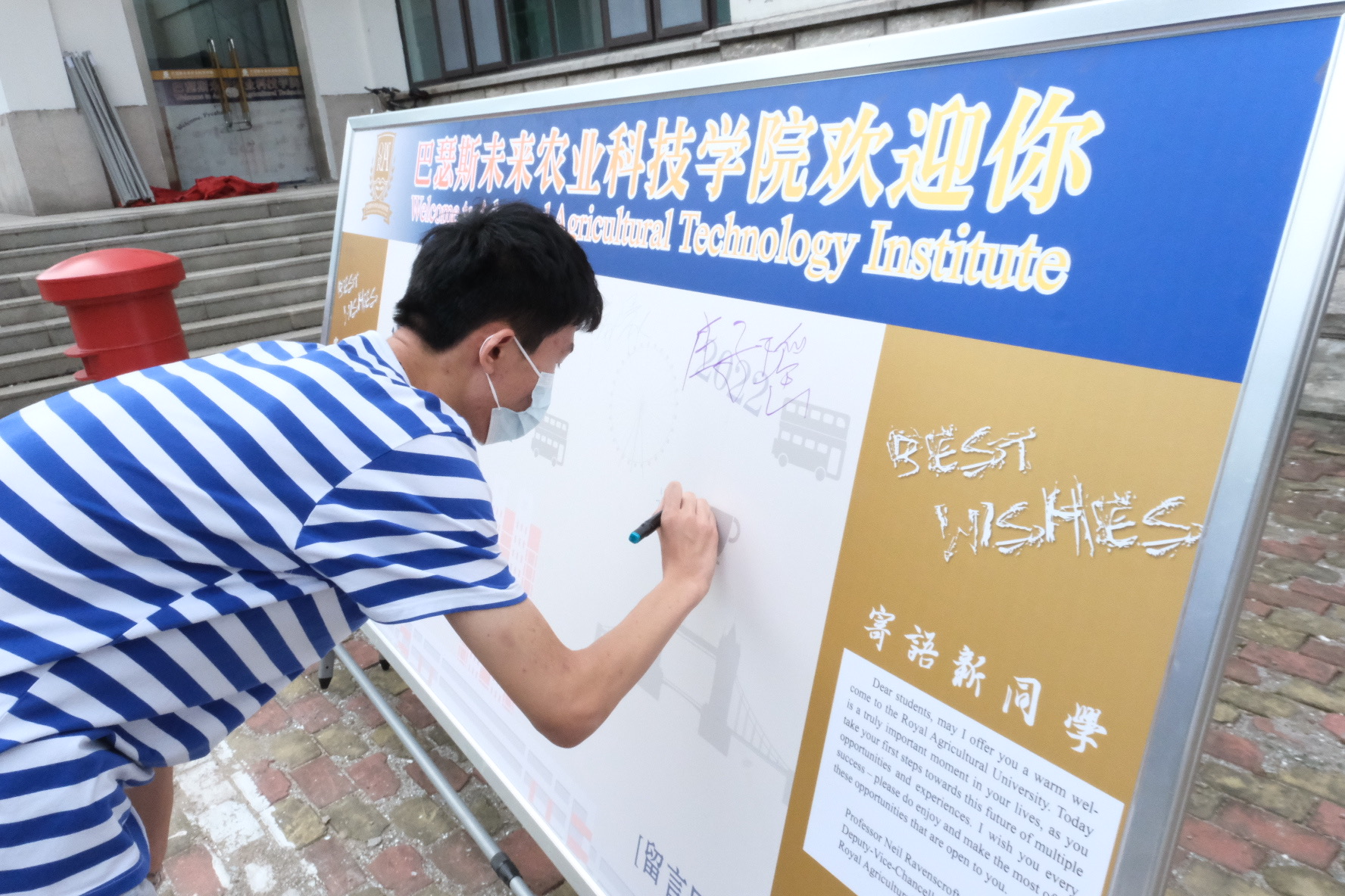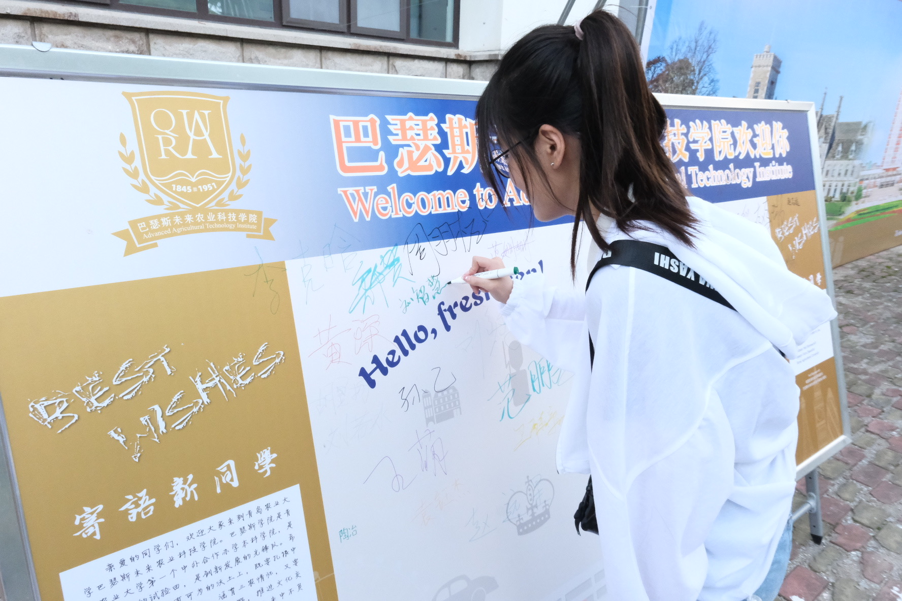 “小巴拍了拍你说,welcome! My bro”。今年,巴瑟斯未来农业科技学院迎来了22级学生,为体现学院特色,发挥中外合作办学优势,学院于迎新地点设置“Welcome巴”新生报到区、“Pic巴”英伦风拍照区,“Wish巴”签名留念板和“Show巴”学院风采展示屏,并准备了装有书签、学院文创产品的“I巴”新生大礼包,进一步拉进新生与学院之间的距离,切身感受到热烈温暖的迎新氛围。