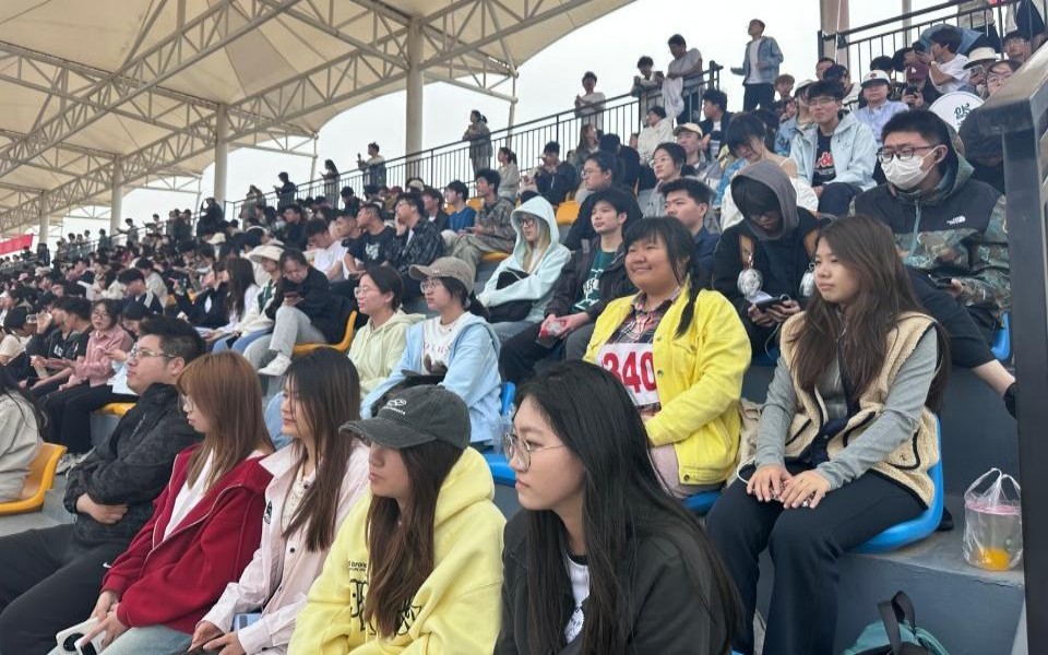 观众席间,学院观众以灼灼目光追随健儿身影,用嘶哑声线铸就声浪城墙,加油的呐喊如惊雷炸响,翻飞的加油板卷起金色麦浪,挥舞的手臂化作传递信念的旗帜。学院老师和学生干部织就护航网络,补给站传送的能量饮料凝结掌心温度,摄影师跪地抓拍的镜头里盛满荣耀晨露,穿梭在烈日下的服务人员,用汗迹在服务手册上写下无言勋章。当助威声浪与保障细流交汇成河,学院构筑起最坚实的战壕,以炽热呐喊为利刃,劈开赛场的焦灼,用沉默守护作基石,托举起巴瑟斯学子飞驰的梦想。