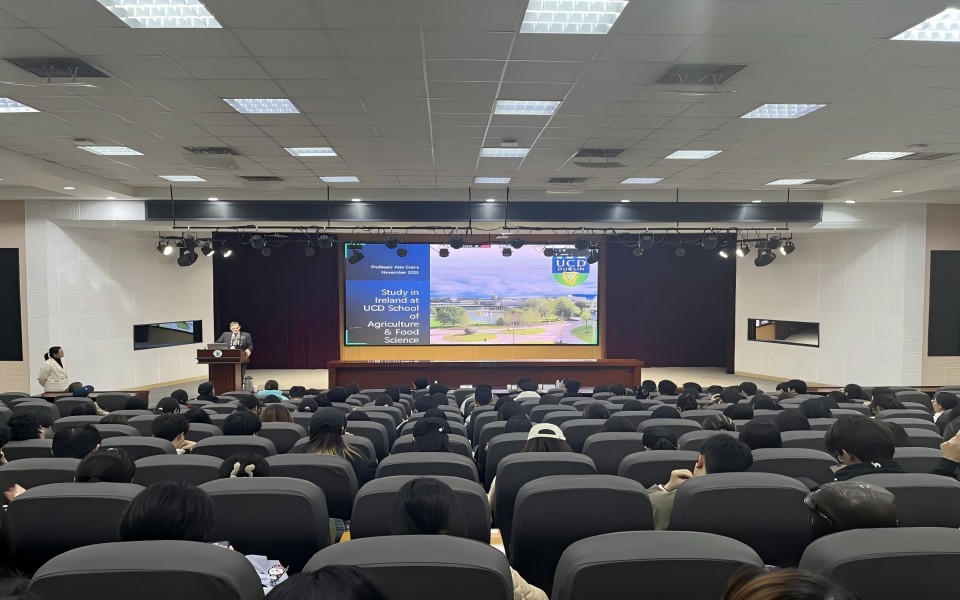 11月13日下午,青岛农业大学巴瑟斯未来农业科技学院在学术会馆第二报告厅举办爱尔兰都柏林大学硕士项目宣讲会,邀请都柏林大学农业与食品科学学院前院长Alexander Evans教授宣讲硕士项目,学院党委书记王光炬、院长刘焕奇,国际合作交流处国际交流科副科长刘成霞,学院教师以及学生代表参加。