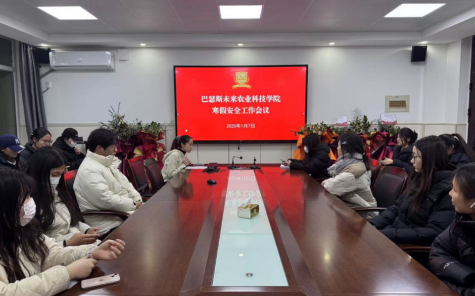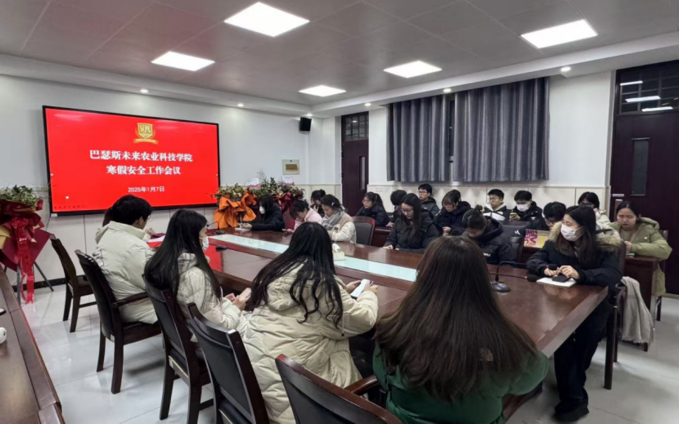 为筑牢安全防线,保障学生人身与财产安全,1月7日,青岛农业大学巴瑟斯未来农业科技学院在教学楼G205召开寒假学生安全工作会议。会议由学院辅导员葛得铭主持,全体学生干部参加。