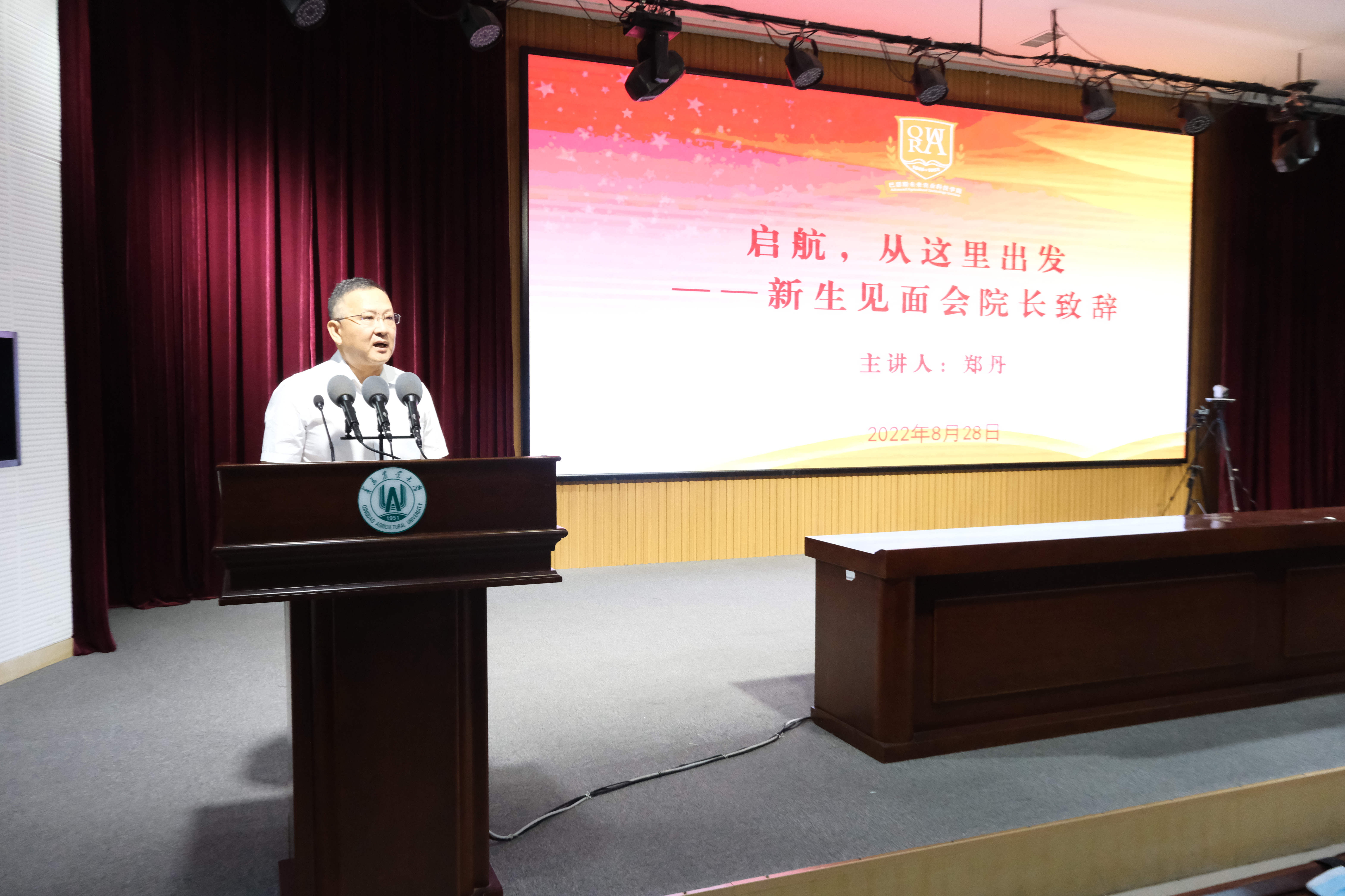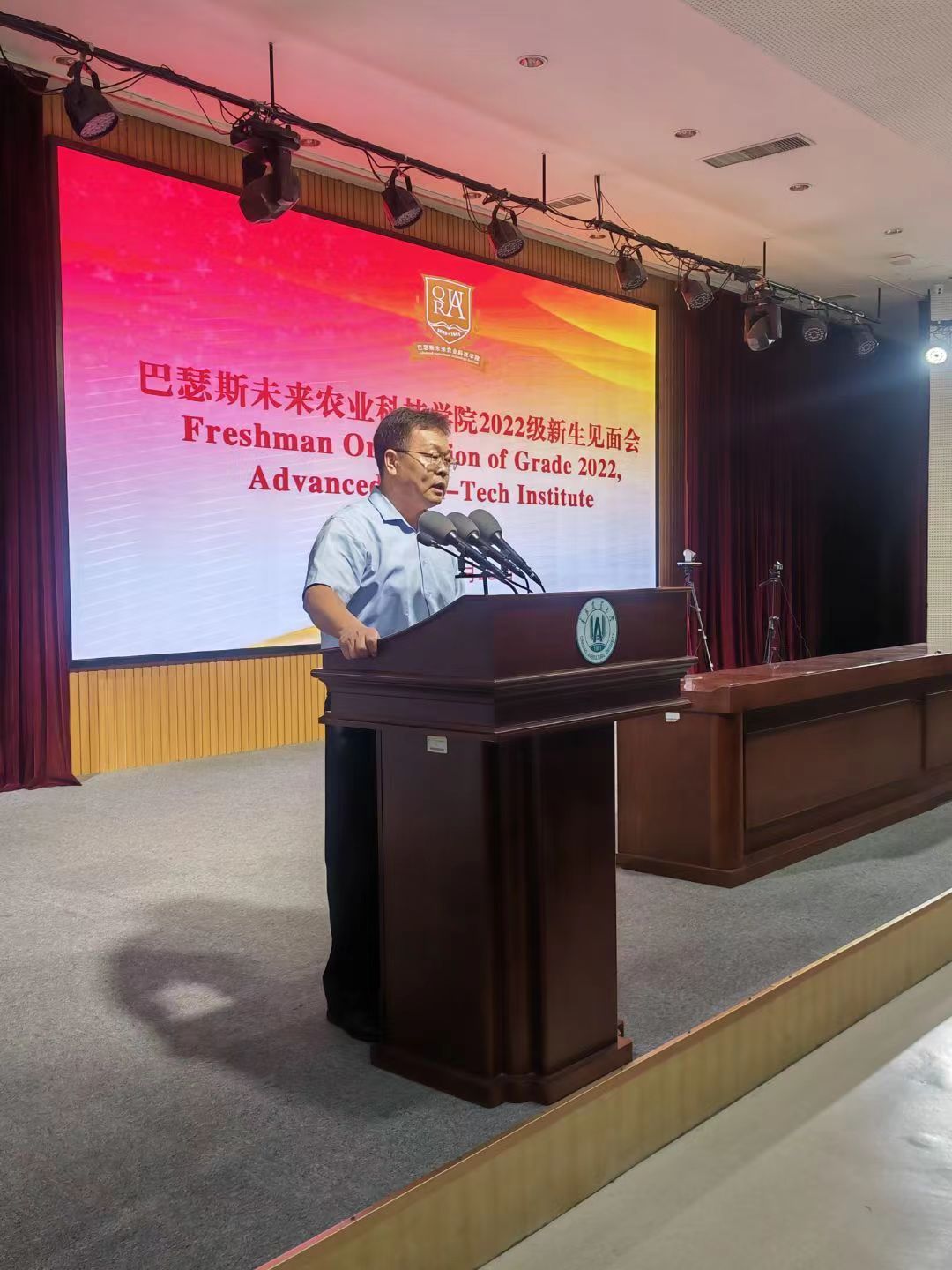 刘焕奇对2022级全体新生表示诚挚的欢迎,并逐一介绍了与会的学院领导、老师、RAU驻校专员和各班班主任,所有师生全体起立,共唱国歌。之后,与会人员共同观看了学院宣传片《启航》、《我在巴瑟斯》。学院院长郑丹对学院办学理念特色、专业设置、人才培养模式和发展机遇进行了详细全面的介绍。他对新生给予了殷切期望:面对新的征程,同学们既“生逢其时”,又“重任在肩”,在享受中外合作办学优质教育资源和“4+0”办学模式带来的巨大优势的时候,要牢记中外合作办学的使命,在树立国际视野之广、感悟文化碰撞之美的同时,要做思想上的“靠谱”青年,希望大家能持之以恒,在四年的学习中不断提升自己的水平、丰富自己的经历、陶冶自己的情操,培养中国情怀,坚定文化自信,正确认识中国特色与国际借鉴,在国际舞台上讲好中国故事,传播好中国声音,推动农业国际交流与合作,真正成为中国农业国际化发展的开路先锋和中坚力量。