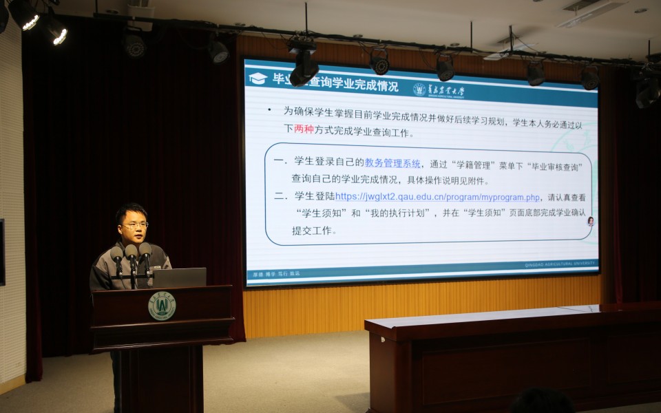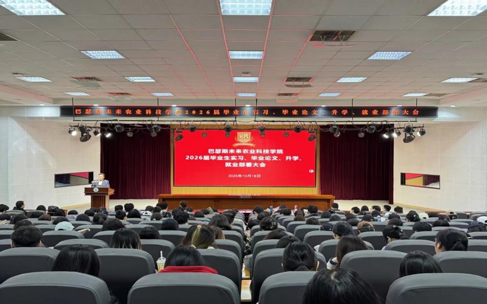 10月18日,青岛农业大学巴瑟斯未来农业科技学院在学术会馆第二报告厅召开2026届毕业生实习、毕业论文、升学、就业工作部署大会。会议由学院党委书记刘焕奇主持,邀请学生工作处副处长吕国莹解读就业政策,农学专业负责人焦付超解读实习和毕业论文政策,学院全体辅导员、毕业班班主任、2026届毕业生参加。