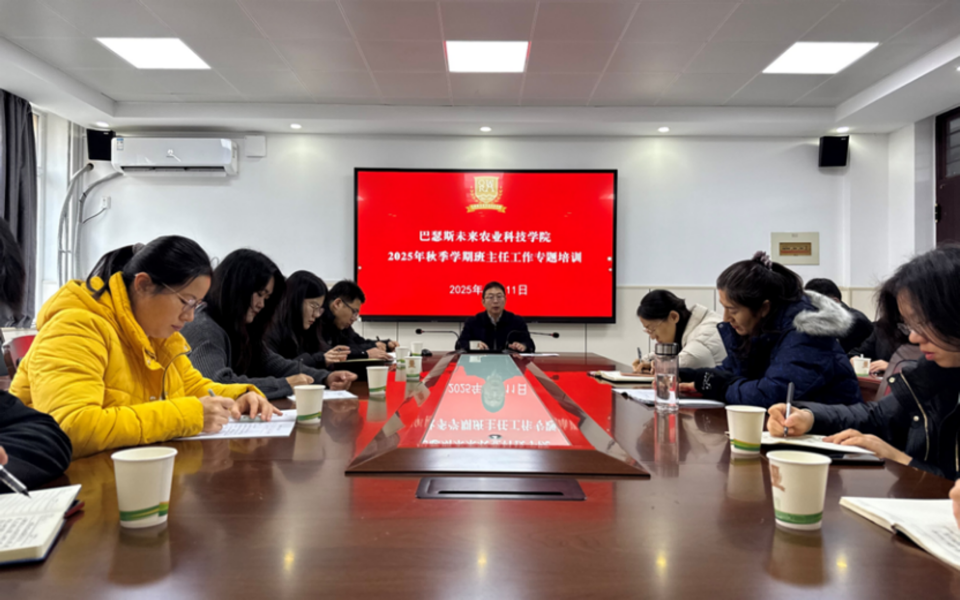 12月11日,青岛农业大学巴瑟斯未来农业科技学院在教学楼G205召开2025年班主任工作会议暨专题培训会。学院党委书记王光炬主持会议,全体辅导员、2023-2025级全体班主任参加。
