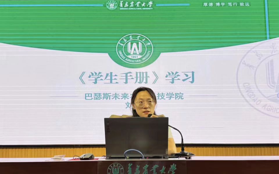 9月6日,青岛农业大学巴瑟斯未来农业科技学院在学术会馆第二报告厅举行《学生手册》《学习指导手册》、RAU学业规定、与外教沟通方式专题讲座。学院团委书记刘璐、正科级秘书王继芳、外事秘书张少哲、RAU中国中心驻学校专员李迎分别主讲,讲座由学院辅导员葛得铭主持,2025级全体新生参加。