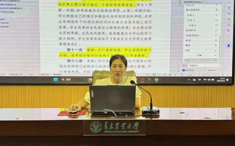王继芳聚焦《学习指导手册》,详细讲解学校学分制管理、本科课程考核、课堂教学规范、考场规则、教室文明守则及实验守则等核心管理规定。她强调,手册是新生适应大学学习、规划学业的重要指南,能帮助学生明确规则、规避风险,为学业推进奠定基础。
