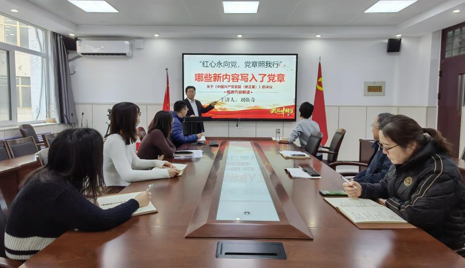 刘焕奇围绕党章发展的历史进程、二十大对党章作出的修改等方面,对新党章进行深入全面地解读。刘焕奇指出,党的二十大审议通过的《中国共产党章程(修正案)》,凝聚了全党的共同意志,切实巩固了党的二十大的重大政治成果,为全面建设社会主义现代化国家、全面推进中华民族伟大复兴统一了思想、意志和行动。刘焕奇强调,全院教职工要深刻领会学习新党章,重点把握党的二十大对党章作出的修改,将党章作为思想的指引、行动的纲领,严格遵守党章,全面贯彻党章,将学习成效体现在日常的工作和生活中,不断强化作风建设,在学院内营造风清气正的党风院风。