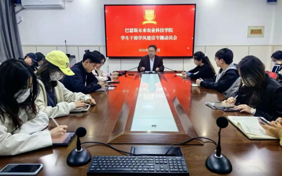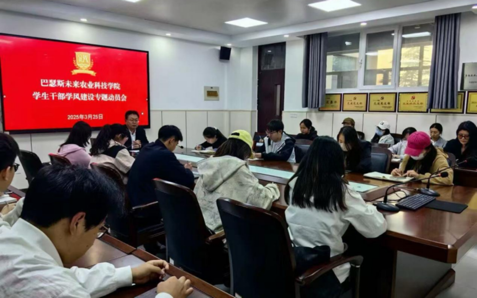 3月25日,青岛农业大学巴瑟斯未来农业科技学院在教学区G205召开2025年春季学期学生干部学风建设动员会。会议由学院党委书记刘焕奇主持,辅导员葛得铭及全体学生干部参加。
