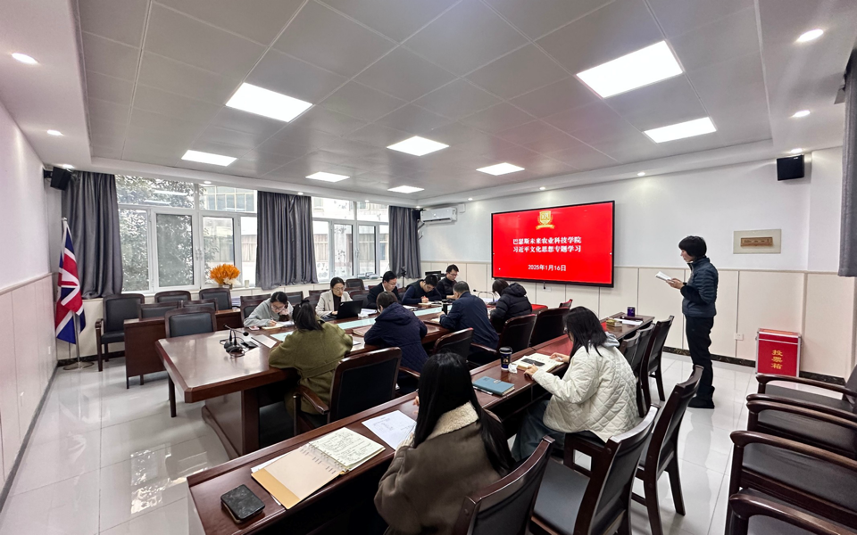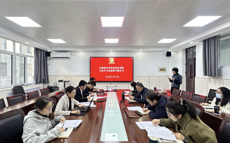 1月16日,青岛农业大学巴瑟斯未来农业科技学院在教学楼G205开展习近平文化思想专题政治理论学习,学院党委书记刘焕奇主持会议,全体教职工参加。
