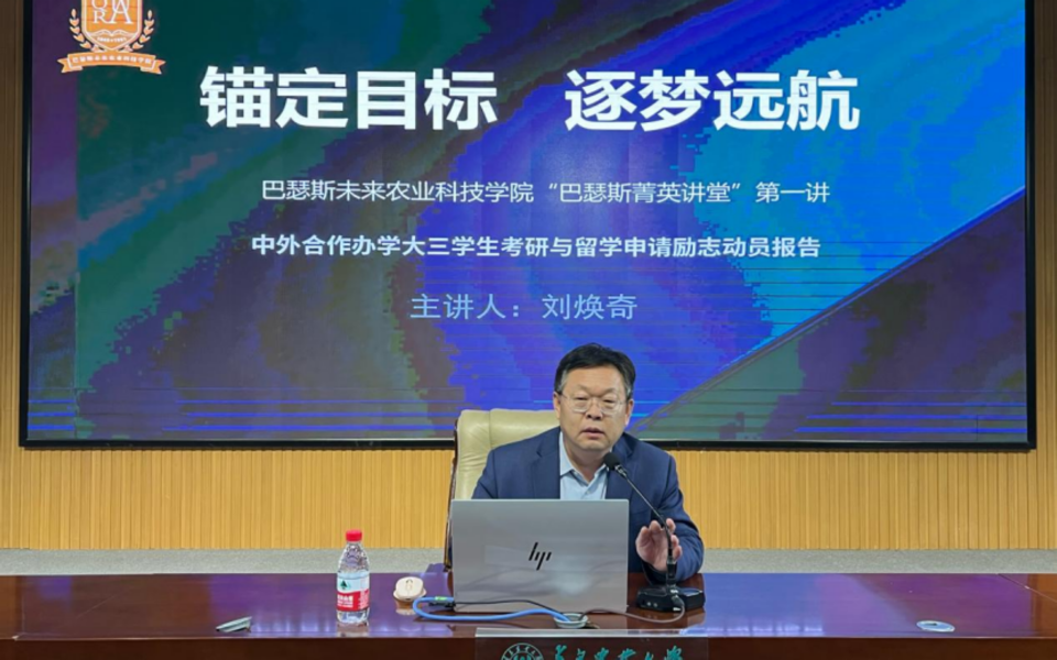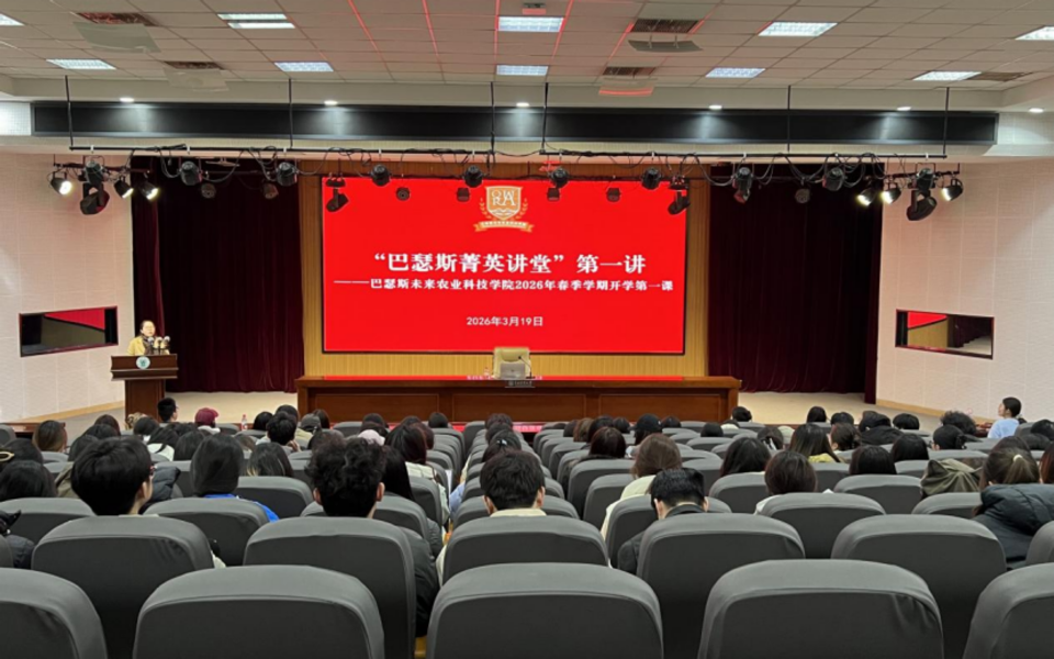 3月19日,青岛农业大学巴瑟斯未来农业科技学院在学术会馆第二报告厅开展“巴瑟斯菁英讲堂”第一讲暨2026年春季学期开学第一课。本次讲座以“锚定目标,筑梦远航”为主题,由学院院长刘焕奇主讲,留学生涯规划中心张元龙作专题分享,2023级全体学生参加,辅导员葛得铭主持。