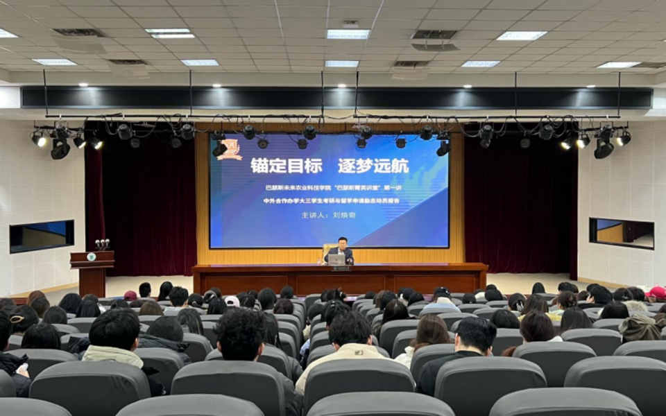 讲座中,刘焕奇紧扣农业强国建设时代命题,结合国家农业现代化发展要求,系统阐释新时代青年学子面临的发展机遇。他立足学院中外合作办学实际,介绍近年来学院在人才培养、升学深造、就业创业方面的扎实成效,结合毕业生升学就业实际情况,展现学生在国内考研、出国留学、就业发展三大方向的良好态势与综合竞争力。