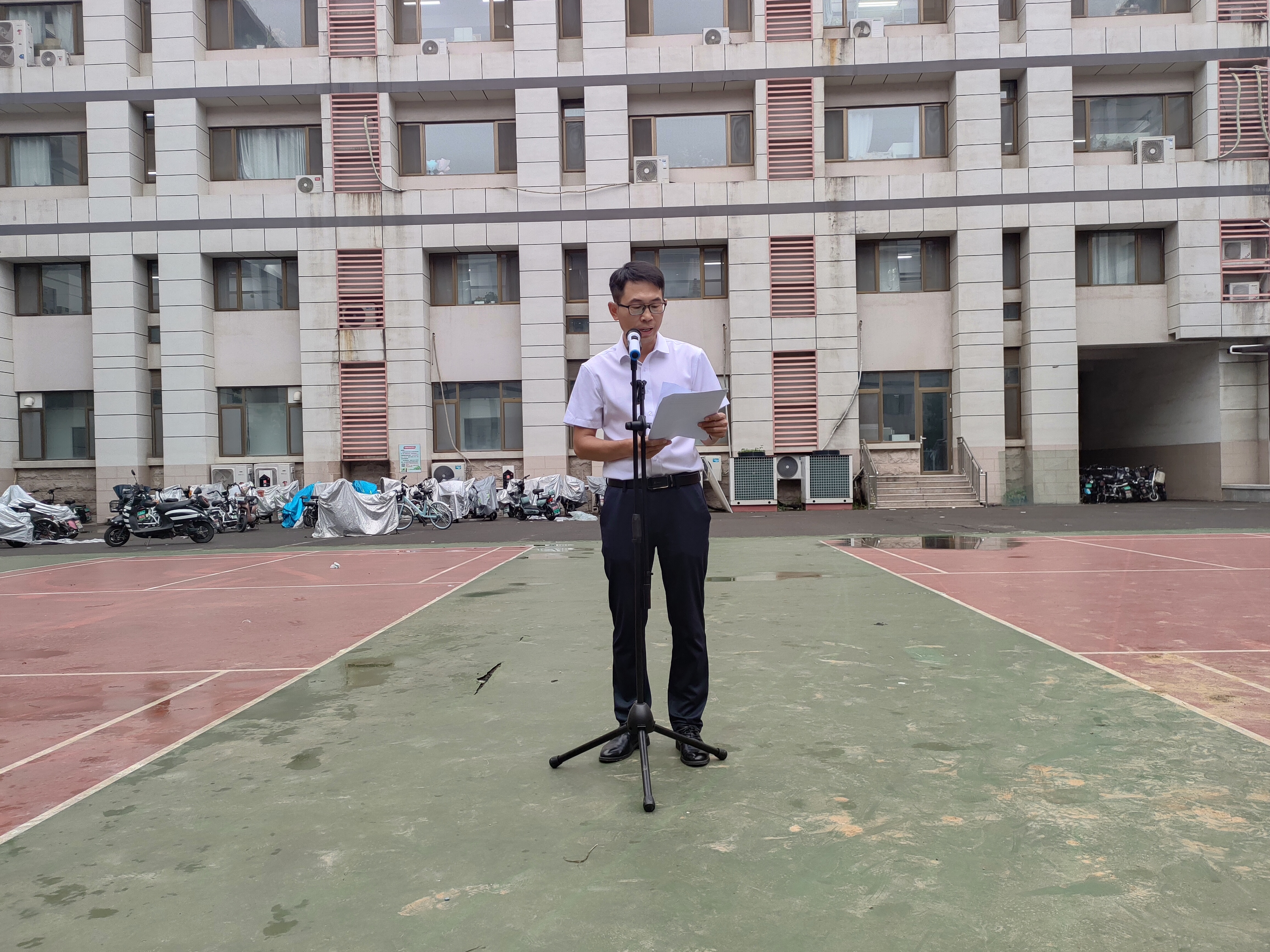刘璐首先介绍了参加动员大会的学院领导、老师和教官。随后,张照辉作动员讲话,他从国家、高校、学生三个角度阐释了军训的重要意义,军训不仅是国防教育法的要求,也是学校人才培养工作的重要组成部分,对新生来说更是磨练意志、强健体魄、培养习惯、锤炼品德的机会,是为大家今后学习生活奠定坚实基础的必经之路。随后,他向大家提出了几点要求,一是要端正态度、刻苦训练,发扬“掉皮掉肉不掉队,流血流汗不流泪”的精神,敢于吃苦,迎难而上;二是要严守纪律,服从命令,严格遵守训练规定,一切行动听从指挥;三是全力投入 认真学习,学习军队的好思想、好作风、好传统,把军训中的收获化为学习的动力;四是加强防护,牢记安全,提高自我保护意识,确保安全参训。他希望所有新生在军训中能够不断超越自我,将军人的优良品质融入自己的品格,将“不抛弃,不放弃”的信条播撒到集体中,成为有体魄、有思想、有情怀、有责任、有担当的社会主义事业合格建设者和接班人。