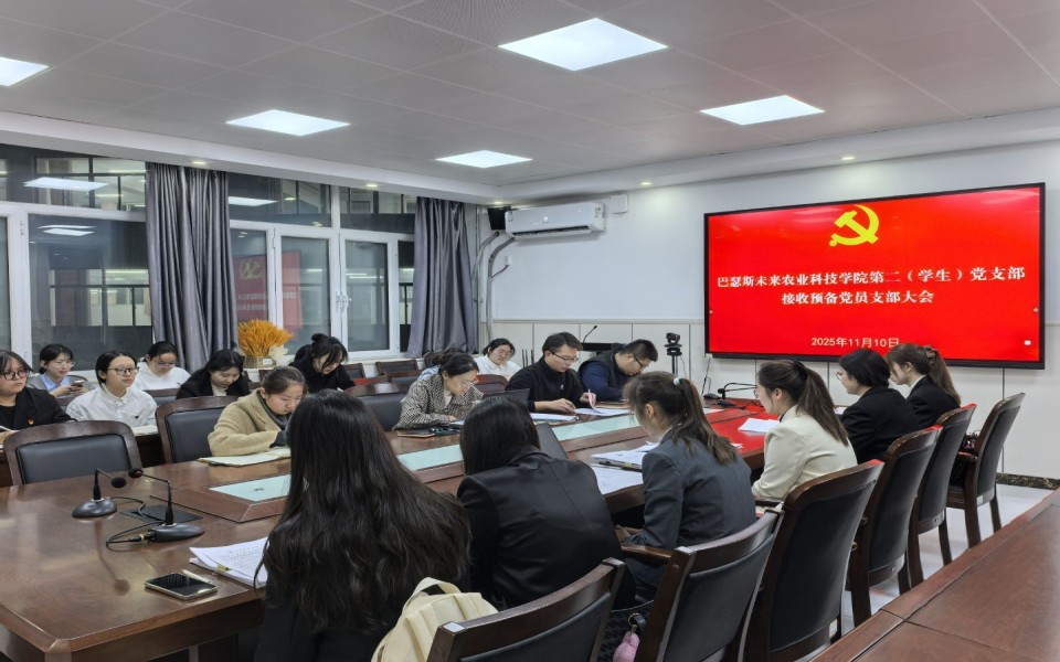 11月10日,青岛农业大学巴瑟斯未来农业科技学院第二(学生)党支部在教学楼G205会议室召开接收预备党员支部大会。会议由学院团委书记、第二(学生)党支部书记刘璐主持,支部全体党员参加。