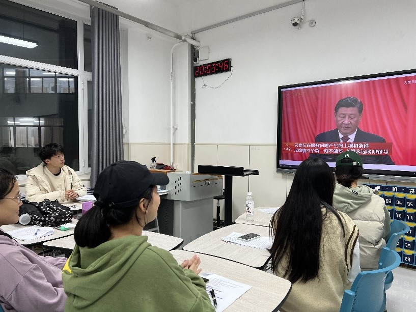 团课中,各团支部通过“领学”“比学”“促学”等方式,带领团员青年学习了党的二十大报告、习近平总书记在二十届中共中央政治局常委同中外记者见面上的重要讲话和习近平总书记在中共中央政治局第一次集体学习时发表的重要讲话等内容,并结合学习生活实际,畅谈学习心得与感悟。食品2003团支书慕雨珅表示,聆听了习近平总书记所作的二十大报告,深受教育鼓舞,自己将进一步深入学习、深刻领会党的二十大精神,不断用党的先进思想武装头脑,做到入脑入心,并以此指导推动自己的学习、生活和工作,在各方面发挥团员青年的先锋模范作用。物流2103团支书孟令睿表示,二十大的召开,不仅是国家大事,更是青年的“大事”,我们青年要坚定不移听党话、跟党走,立志高远,脚踏实地,夯实专业素养,树立国际视野,努力为中国农业“走出去”“引进来”贡献自己的一份力量。
