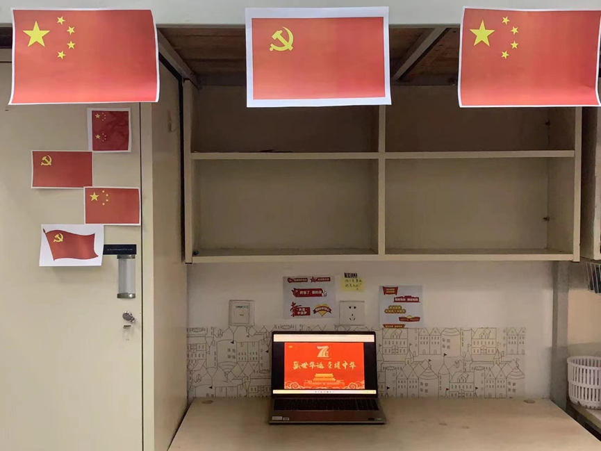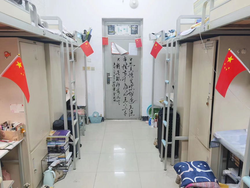 在“宿说爱国情,献礼二十大”宿舍创意设计大赛中,同学们在保持宿舍内务整洁的基础上,利用党旗、国旗、毛笔字、对联等元素,对宿舍进行了创意性设计装饰,提升了宿舍的整体文化氛围,展现了青年学子浓厚的爱党爱国情怀和积极向上的精神风貌。