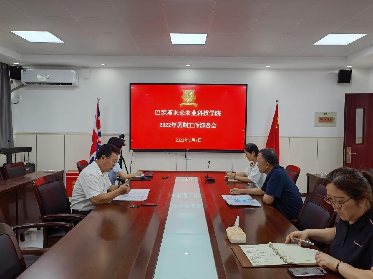 为提高暑期工作效率,保证部署工作顺利进行,7月7日,巴瑟斯未来农业科技学院于教学楼G205召开2022年暑期工作部署会。会议由党总支书记刘焕奇主持,院长郑丹、副院长陈海华、正科级秘书王继芳出席。